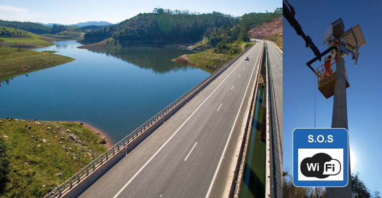 • Fomos a primeira empresa a instalar wi-fi em rodovia no país. O projeto inclui a cobertura Wi-Fi em 80 km da rodovia, sendo 14 km de serra, cobertura com roaming. Projeto composto por 612 Access Points, APP para usuário com rádio, comunicação via VoIP com o CCO, Câmeras da Estrada, Alertas e capacidade de monetização através de propaganda e serviços de Internet.